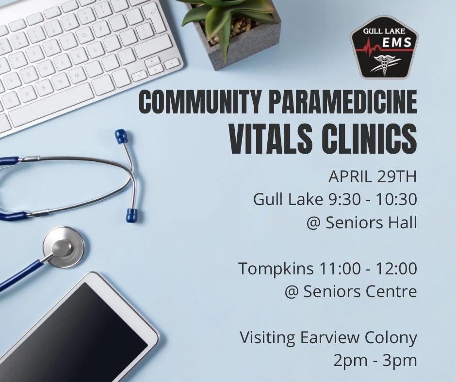 Come on out to the Senior's Hall in Gull Lake for a vitals clinic put on by the Gull Lake Ambulance Service.